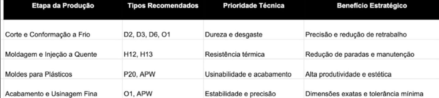 Critérios de escolha: como definir o Aço certo para cada etapa
